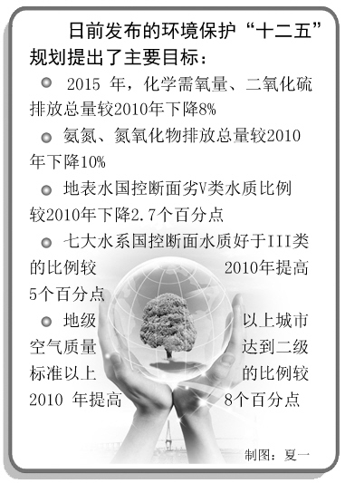 日前我国发布了环境保护“十二五”规划,明确了环保目标、总投资和重点工程。