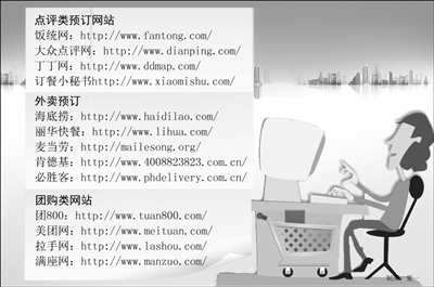 大众点评网、饭统网、订餐小秘书这些点评类的订餐网站,是网上订餐时最主要的信息参考网站。对于某个确定的餐馆,从人均消费价格到拿手菜,甚至包间大小、是否有停车位,网站上都可以看到。如果消费者没有确定要去的餐馆,此类订餐网站还提供包括菜系、价格、服务、环境等按照不同关键字生成的分类排序,方便消费者按照不同的需求查询。