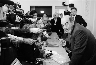 1月3日,联合国粮农组织新任总干事若泽·格拉齐亚诺·达席尔瓦(右一)在罗马举行上任后首次新闻发布会。他表示,消除饥饿是其任期内5个“战略优先”中的重点。 新华社记者 王庆钦摄