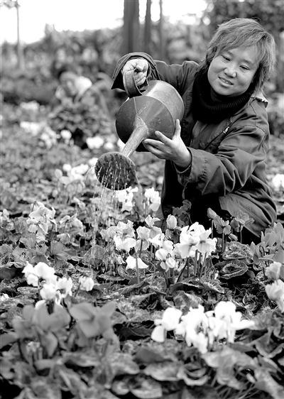 虽是寒冬季节,但河北省张家口市宣化区侯家庙乡小慢岭村的花卉大棚内却是百花斗艳、一片生机,花农们在忙着培育盆花备战春节市场。该村引进资金500万元的花卉栽培项目,建设占地20亩集花卉、乔灌木、观赏花栽培于一体的“亿隆”花卉基地,可安置200名农村劳动力就业,年实现利润300万元,成为农民增收的又一重要渠道。图为花农在为花卉浇水。