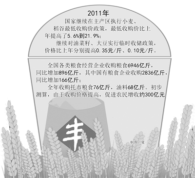 据悉,2011年,国家继续在主产区执行小麦、稻谷最低收购价政策,最低收购价比上年提高了5.6%到21.9%;继续对油菜籽、大豆实行临时收储政策,价格比上年分别提高0.35元/斤、0.10元/斤,还对新疆的小麦和东北地区的玉米实行了临时收储政策。