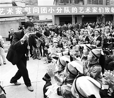 1月9日,国家话剧院演员莫元季在广西百色市右江区阳圩镇平圩村为群众进行幽默表演。 周信实摄(新华社发)