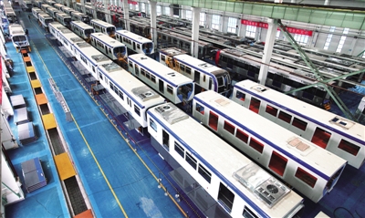 这是等待进行最后测试的轻轨列车(1月10日摄)。为改变重庆轻轨3号线运力不足的情况,重庆长客轨道车辆公司正开足马力生产轻轨列车。预计4月份之前,将有13列轻轨列车下线,随着车辆配置增加,拥挤的情况将得到有效缓解。 新华社记者 陈 诚摄