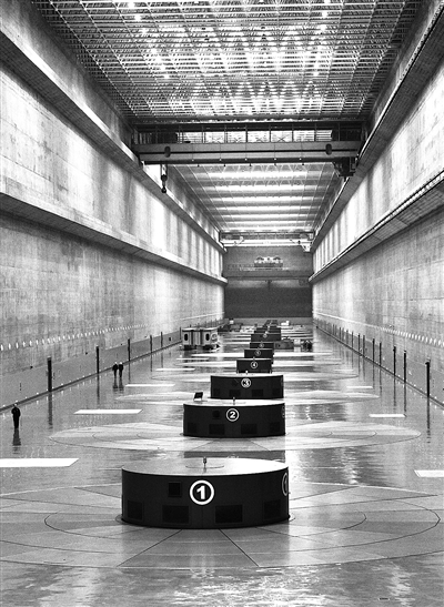 1月9日拍摄的三峡电站左岸厂房内景。据中国长江电力股份有限公司通报,2011年,长江三峡和葛洲坝电站累计发电945.57亿千瓦时,较2010年减少6.02%。 郑家裕摄(新华社发)
