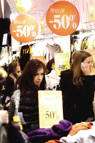 右图 1月5日,在意大利罗马,人们在一家商店内购物。当天,包括罗马、米兰、威尼斯在内的意大利主要城市进入冬季打折季。 (新华社发)