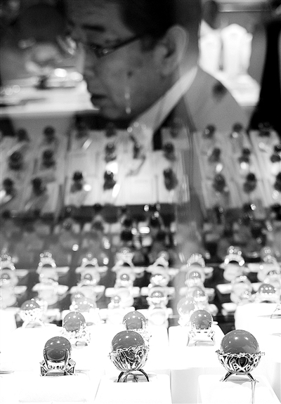 左上图 1月11日,顾客在日本东京国际展览中心挑选珠宝。 (新华社发)