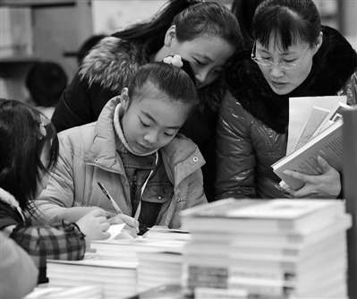 1月14日,两名“小馆员”在家长的陪伴下挑选读物。当日,合肥少年儿童图书馆举办“我的图书我做主”寒假“小馆员”采购团活动,邀请100多名“小馆员”来到安徽图书城挑选孩子们喜爱的图书。 新华社记者 刘军喜摄