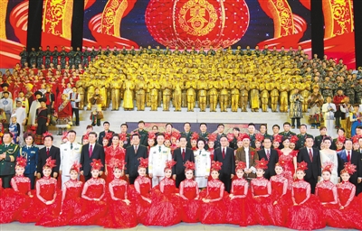 演出结束后,胡锦涛等党和国家领导人走上舞台,与演职人员亲切握手,祝贺演出成功。