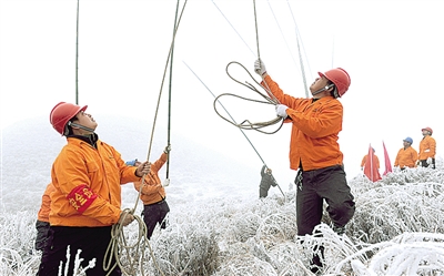 今年元旦假日,贵定遭受到雪凝天气侵袭,为进行线路除冰,并对该县的农网进行改造升级,加强农村配变设备的安装增容、线路架设,供电员工没有好好休息一天。