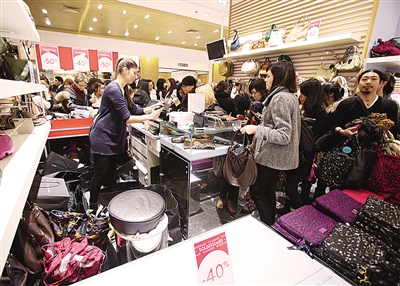 1月中旬,为期5周的法国冬季打折季拉开帷幕。打折季首日“火爆异常”,各主要商场都取得了非常理想的收入业绩。巴黎老佛爷百货仅上半天营业额就上涨了近10%。但是,法国的市场调查机构认为,长达五周的打折季对消费者的吸引力可能低于去年。 (新华社发)