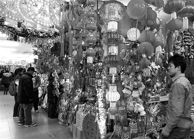 上图:春节将至,市民来到小商品市场淘“喜庆”商品。