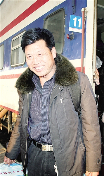 右图 1月15日,高清月从7558次列车上走下来,准备换乘T70次列车。