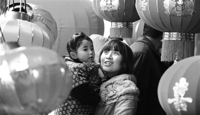 1月22日,河南驻马店市年货市场,在外打工回家过大年的朱贺芝带着女儿正在选购节日物品。 本报记者 李景录摄