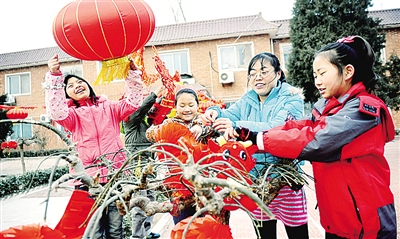 | 1月26日,北京顺义区光爱学校的老师和学生们一起挂灯笼,度春节。这所学校专门收留来自全国各地的流浪儿童、孤残儿童和特困儿童。 |