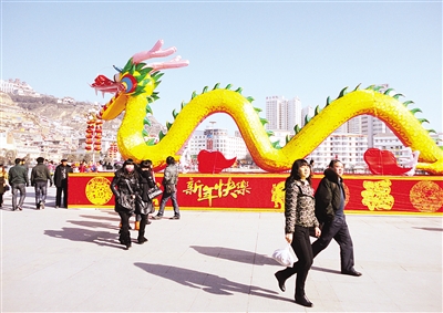 1月25日,农历正月初三,不少市民和游客来到延安市延河广场游览。本报记者 董碧娟摄