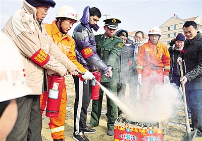 日前,山东省乳山市公安消防大队对街道消防巡护员进行火患处置培训。 刘国贤 陈 剑摄
