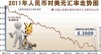 2011年12月初,人民币对美元汇率连续多日触及交易区间的下限,为3年来首次出现。“这些事实充分说明,人民币汇率正逐渐趋于均衡合理水平。”对外经济贸易大学金融学院院长丁志杰说,人民币汇率水平调整目标接近实现,为人民币汇率弹性扩大和市场发挥更大作用奠定了重要基础。