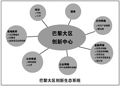 在巴黎大区,整个创新生态系统的构造是非常复杂的,形形色色的机构都参与其中。包括大学、科研机构,以及一些国际、国家或地方层面的科研网络;此外还有一些以网络形式存在的企业集群、企业家俱乐部或融资网络,投资者和银行以及其他一些投资的支持者,如商会、竞争力中心、孵化器等机构。参与者是非常丰富和复杂的。