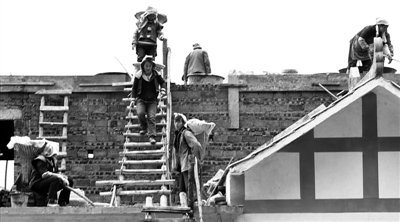 下图 2月1日,在水城县蟠龙乡法那村,当地农民在改造危房。 新华社记者 杨 楹摄