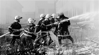大庆市采取联席、联动、联训、联勤、联战的消防“五联模式”,消防队伍整体战斗力显著提高。图为4支消防支队联合扑救石油化工火灾。 本报记者 倪伟龄摄