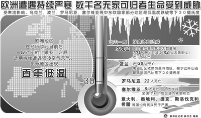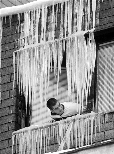 左图 2月2日,在塞尔维亚西南部城市乌日策,一名男子从布满冰柱的窗口向外张望。近日有寒流袭击大半个欧洲,乌克兰、波兰、罗马尼亚、塞尔维亚等中东欧国家最低温度跌破零下30摄氏度。据报道,过去一周欧洲地区的严寒天气已造成160多人死亡。 新华社发