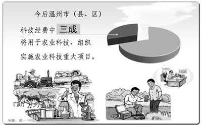 本报讯 记者张玫报道:今年,浙江省温州市出台了一系列规划,推进农业科技创新。温州市(县、区)科技经费中三成将用于农业科技、组织实施农业科技重大项目;鼓励涉农院校与基层建立技术服务结对,提高广大农户的就业技能等。