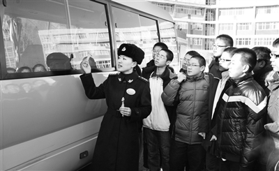 为进一步深化“清剿火患”战役战果,大庆消防支队成立女子消防服务队开展监督检查和消防宣传。图为服务队员面向学生讲解校车火灾逃生常识。 本报记者 倪伟龄摄