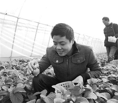 2月初,记者驱车向上海西南方向行驶100多公里,来到了上海金山区刚刚建成的金山草莓研发中心,随同游客一起采摘新鲜的草莓。