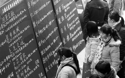 2月3日,来沪务工人员正在上海浦东金桥来沪人员就业保障服务中心浏览招工信息。