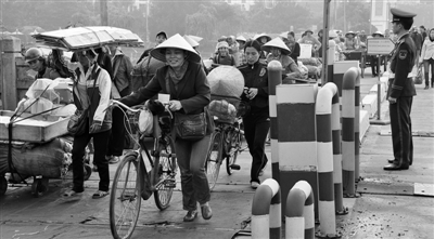 早上8点一开关,云南河口关就开始了一天繁忙的边贸往来。 闫建军摄