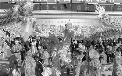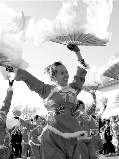 左图 2月6日,山西省朔州市朔城区农业系统的员工在文化广场为市民演出文艺节目,欢庆元宵节。 本报记者 赵 晶摄