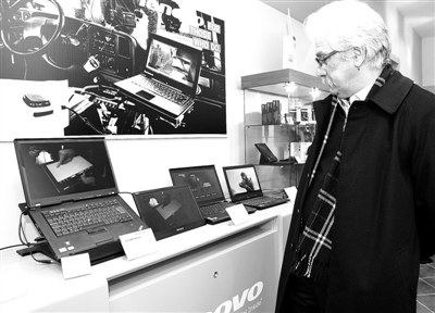一名男子在克罗地亚萨格勒布的联想电脑专卖店内参观。克罗地亚首家联想电脑专卖店日前于萨格勒布正式开业。这家专卖店位于萨格勒布的商业黄金地段,距离市中心广场约100米。