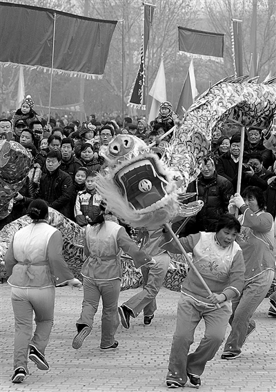 2月5日,郑州市2012年华夏优秀传统民间文化集中展演活动在郑州绿城广场举办,来自各县(市)区的31支盘鼓队伍和16支曲艺队伍争相献艺,丰富群众的新春文化生活。 新华社记者 李 安摄
