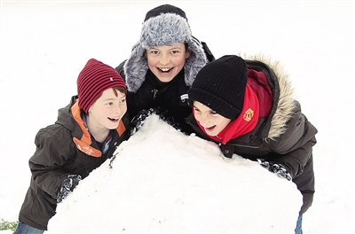 上图 日前,英国遭遇极寒天气的侵袭,不过寒冷的天气却挡不住儿童的稚趣,他们在雪地里玩耍时的张张笑脸给人们带来不少暖意。 本报驻伦敦记者 王传宝摄影报道