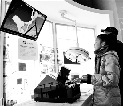 2月9日,在上海科技馆,观众在微创手术模拟操控台前体验牙科医生的工作。当日,上海张江国家自主创新示范区创新成果展在上海科技馆开幕,以“一区十二园”为整体构架的上海张江创新“舰队”正式入驻上海科技馆,将长期保留,定期更新并向公众开放。据悉,这是上海张江国家自主创新示范区“十二园”首次集体亮相,90多个展项分别展示各个园区的建设现状、产业优势、