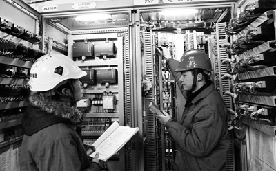2月9日,三峡地下电站工程技术人员对机组试运行后相关设备进行检测。