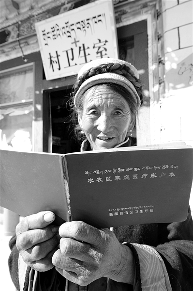 西藏曲松县琼嘎村62岁的扎西曲珍拿着自己的医疗账户本准备在村卫生室就诊(2011年11月23日摄)。以免费医疗为基础,政府主导、个人自愿参加,大病统筹和医疗救助相结合的西藏农牧区合作医疗制度全面推行以来,政府不断加大乡村医疗建设投入力度,逐年提高补助标准。 新华社记者 文 涛摄
