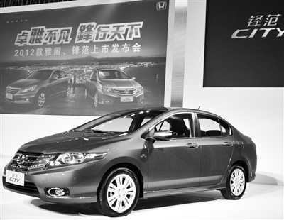 广汽本田执行副总经理姚一鸣表示,2011年,广汽本田第八代雅阁以160735辆的销量蝉联国内中高级轿车“四连冠”。2012款雅阁的改款主要集中在安全配置方面。2012款锋范的改款则进一步提升了车辆外观和内饰质感,并增加了配置。图为联袂升级上市的2012款锋范。 杨忠阳摄