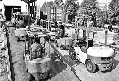 电动事业部,25台“合力”牌节能环保电动叉车正在紧张装配;重装事业部,工人们正在紧锣密鼓地赶制出口委内瑞拉的18t堆高机;成品库前,数辆大型的集装箱货运车排列着,70余台出口到俄罗斯、英国、美国和白俄罗斯等国的内燃和电动叉车正在有条不紊地紧张装车……