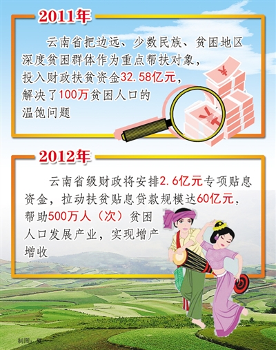 记者了解到,近年来富宁县实施山区瑶族贫困群众搬迁脱贫工程,建成安居房867套,使3460名群众搬出深山,开始了新生活。2011年,云南省像潘忠芬那样搬出深山的各族群众有1.26万人。2011年,云南省把边远、少数民族、贫困地区深度贫困群体作为重点帮扶对象,投入财政扶贫资金32.58亿元,解决了100万贫困人口的温饱问题。