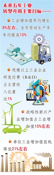 向创新驱动转型。在目前的国际产业分工中,我国制造业多处于全球价值链的低端,“十二五”时期,必须加快调整要素投入结构,在继续发挥原有比较优势基础上,增强自主创新能力,由主要依靠物质资源消耗向主要依靠技术进步、高素质人力资源和管理创新转变。要努力突破制约产业优化升级的关键核心技术,由价值链低端向高端跃升,加快推动发展动力向创新驱动转变。