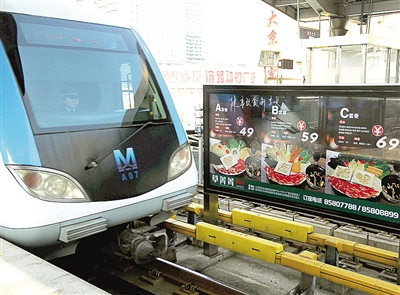 2月19日,武汉轻轨1号线的列车从投放的广告前驶过。武汉地铁广告招标“低标中标”事件,近来引起社会的广泛关注。19日武汉市纪检监察部门宣布此次招标结果无效。 新华社记者 肖艺九摄