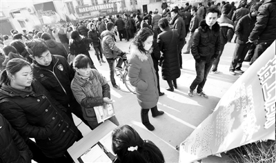 “今年不打算到外地打工,总算不用挤火车喽!”刘师傅憨厚地笑了笑。年前到年后,芜湖从市到县区的招聘会一场接一场,正月十二是当地“春风送岗位”荆方地区农民工专场招聘会,刘师傅寻思着,能在家门口工作当然最好不过。和刘师傅一起跑招聘会的还有他的“工友们”,以往他们常常结伴离乡前往长三角等沿海地区打工,而如今,选择留在家乡就业的则越来越多。