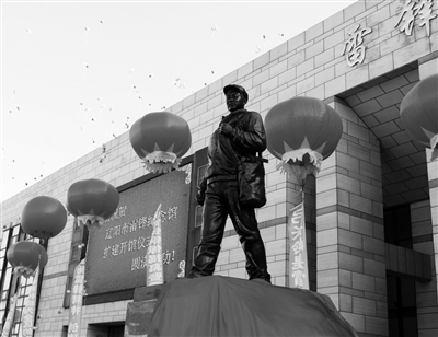 图为在辽阳市雷锋纪念馆前的雷锋工人形象雕像。2月26日,扩建后的辽阳市雷锋纪念馆正式开馆。 新华社记者 李 钢摄