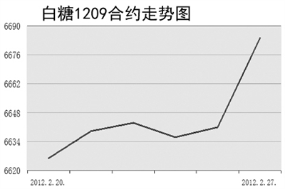 2月27日郑糖1209合约高开高走,报收6684元/吨,较前一个交易日上涨0.63%,盘中最高价6705元/吨,成交量为437584手。