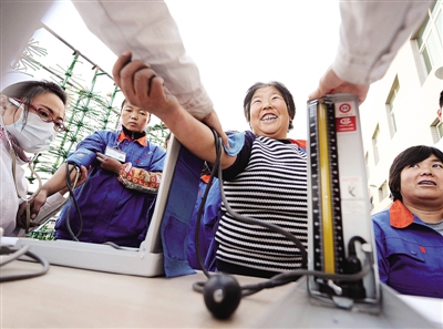 河北省保定市白沟新城人民医院的医护人员,在为洪峰工业有限公司外来务工人员免费体检。