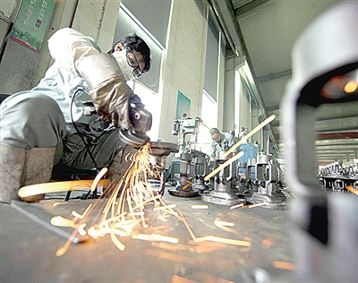 温州岭荣阀门厂车间,工人们正在加工器件。 本报记者 韩 叙摄