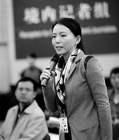 上图 3月8日,十一届全国人大五次会议举行记者会,图为中国经济网记者现场提问。