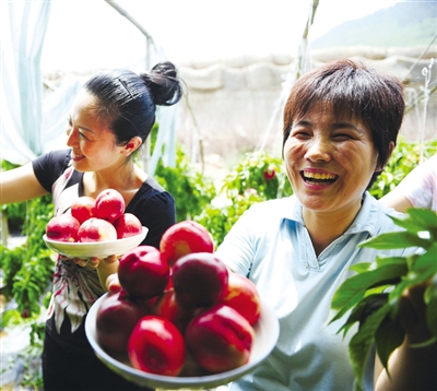 河北迁安市大五里乡张家峪村农民正在采摘油桃。近年来,该市加大农业投入,实施农业开发项目过千项,带动农民增收。 本报记者 李景录摄