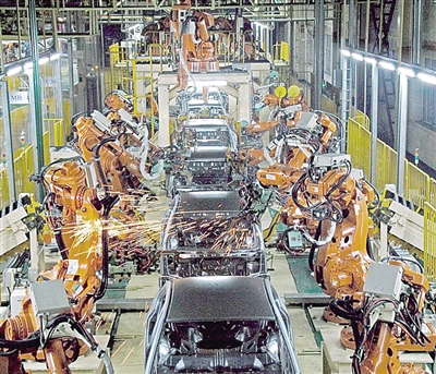 哈尔滨哈飞汽车集团焊装车间。 倪伟龄摄